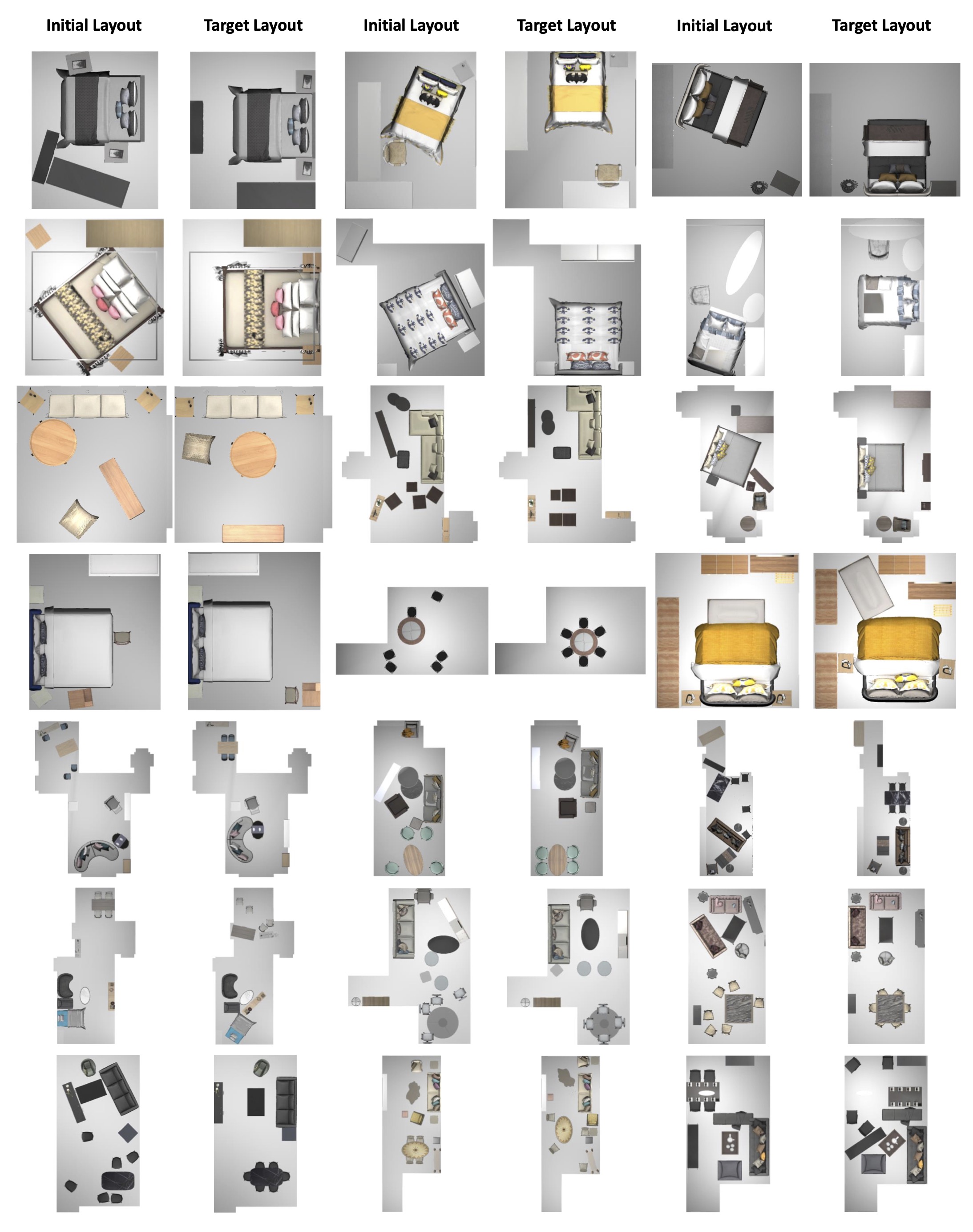 Scene Rearrangement Planning (SRP) has recently emerged as a crucial interior scene task; however, current approaches still face two primary issues. First, prior works define the action space of SRP using handcrafted coarse-grained actions, which are inflexible for scene arrangement transition and impractical for real-world deployment. Secondly, the scarcity of realistic indoor scene rearrangement data hinders popular data-hungry learning approaches and quantitative evaluation. To tackle these issues, we propose a fine-grained action space definition and curate a large-scale scene rearrangement dataset to facilitate the training of learning approaches and comprehensive benchmarking. Building upon this dataset, we introduce a novel framework, PLATO, designed for efficient agent training and inference. Our approach features an exPert-assisted curriculum Learning (PL) paradigm that possesses a Behavior Cloning (BC) and an offline Reinforcement Learning (RL) curriculum for agent training, along with an advanced tree-search-based planner enhanced by an Adaptive Trade-Off (ATO) strategy to improve expert agent performance further. We demonstrate the superior performance of our method over baseline agents through extensive experiments and provide a detailed analysis to elucidate its rationale.